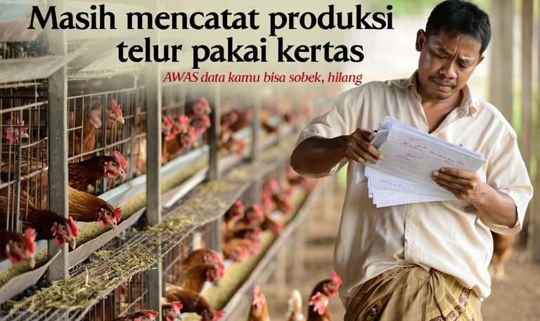Coba bayangkan pemandangan ini: Anda berdiri di tengah riuhnya suara ayam di kandang, tangan kanan memegang pulpen, dan tangan kiri memegang tumpukan kertas yang sudah lecek, berdebu, bahkan mungkin terkena kotoran atau cipratan air pakan. Anda mencoba menyalin angka produksi telur hari ini, tapi kolom di kertas sudah penuh, atau lebih parah lagi, catatan minggu lalu terselip entah ke mana.