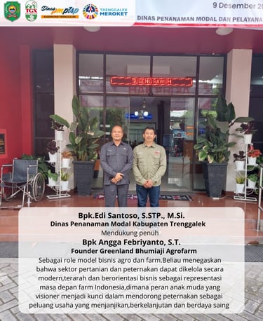 Greenland Bhumiaji Agrofarm menciptakan nilai bersama dengan membantu peternak Indonesia mengelola usahanya secara lebih cerdas, terukur, dan berkelanjutan, sehingga peternak bertumbuh, bisnis berkembang, dan ekosistem peternakan nasional menjadi lebih kuat.